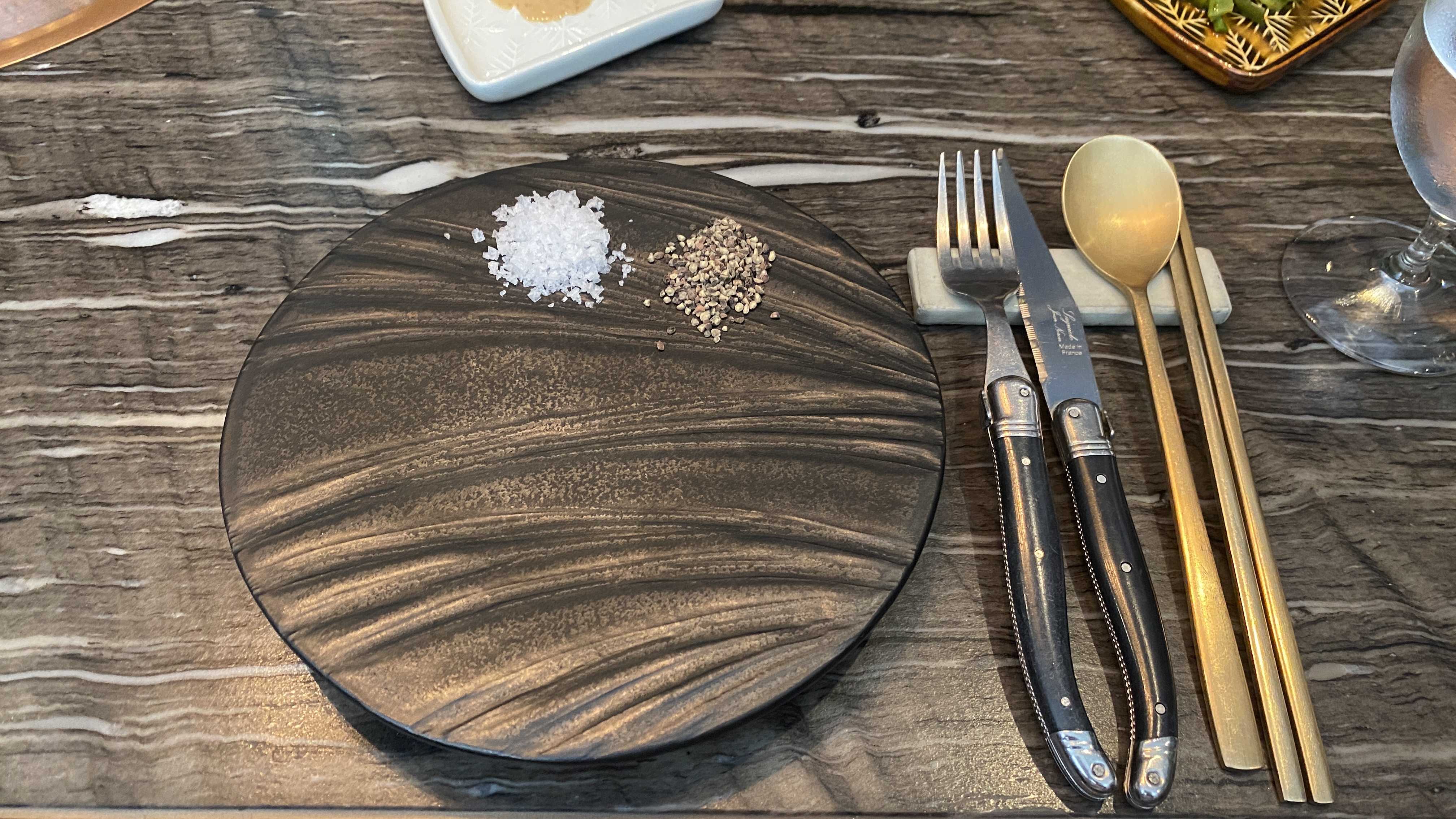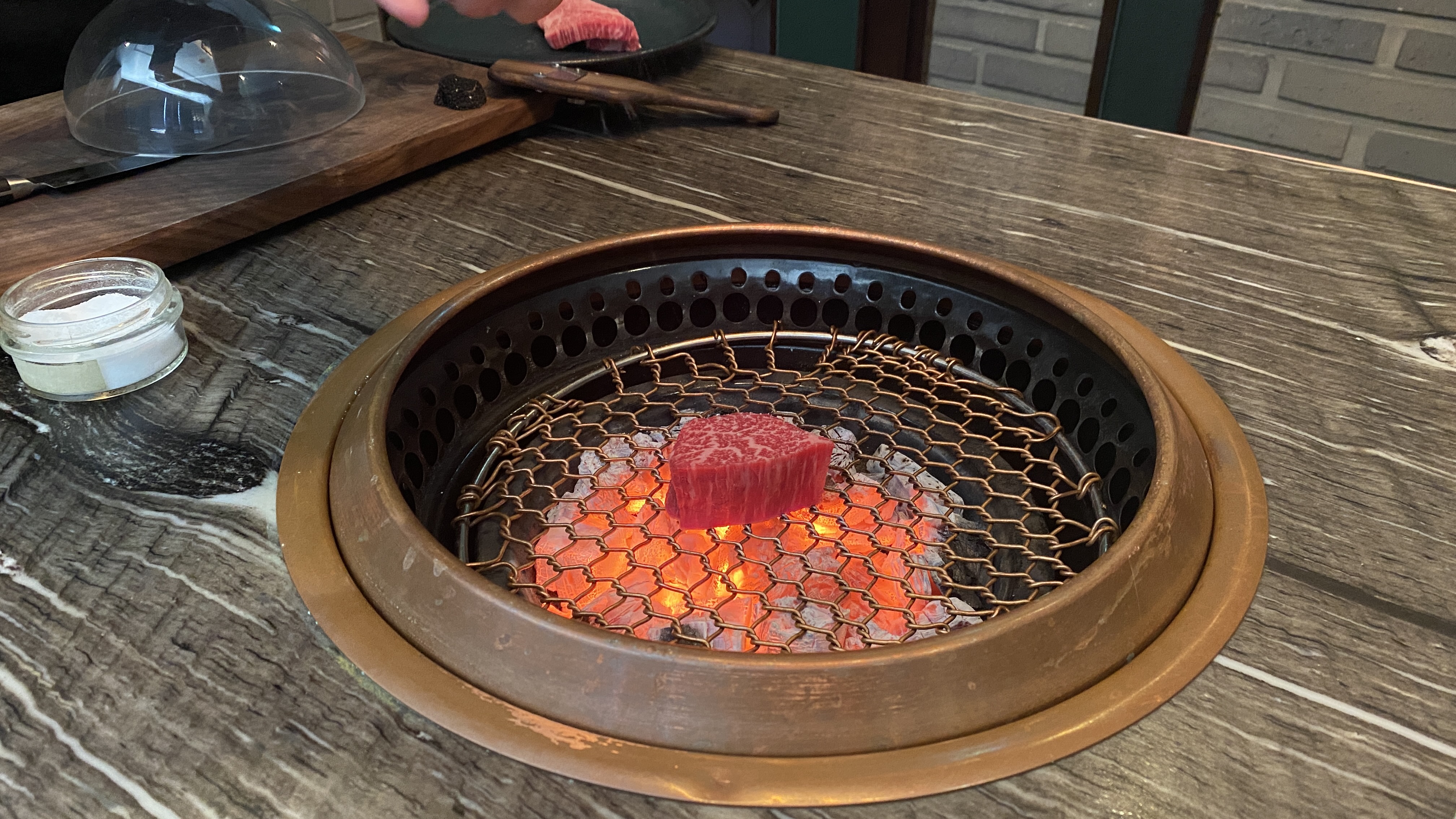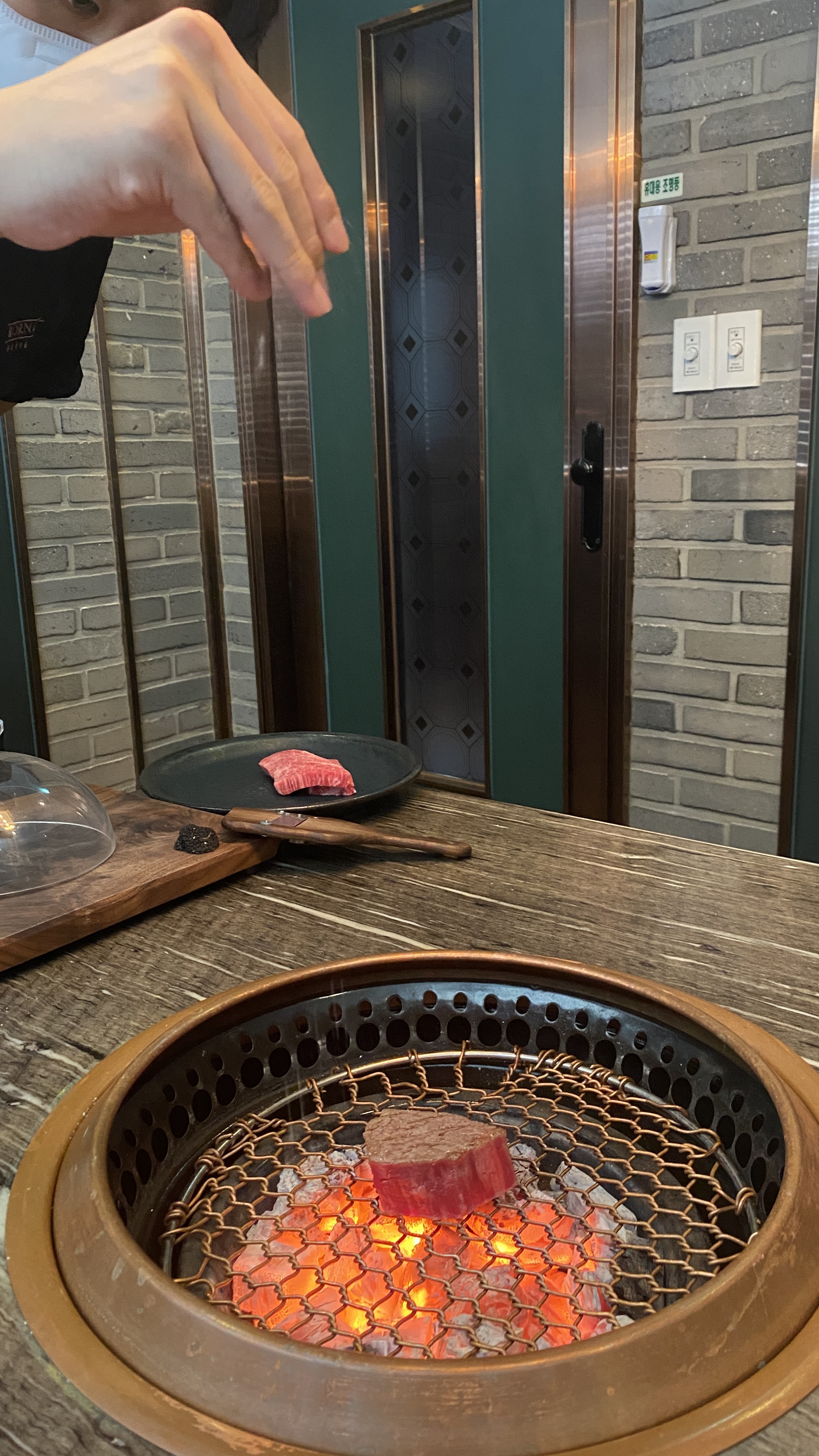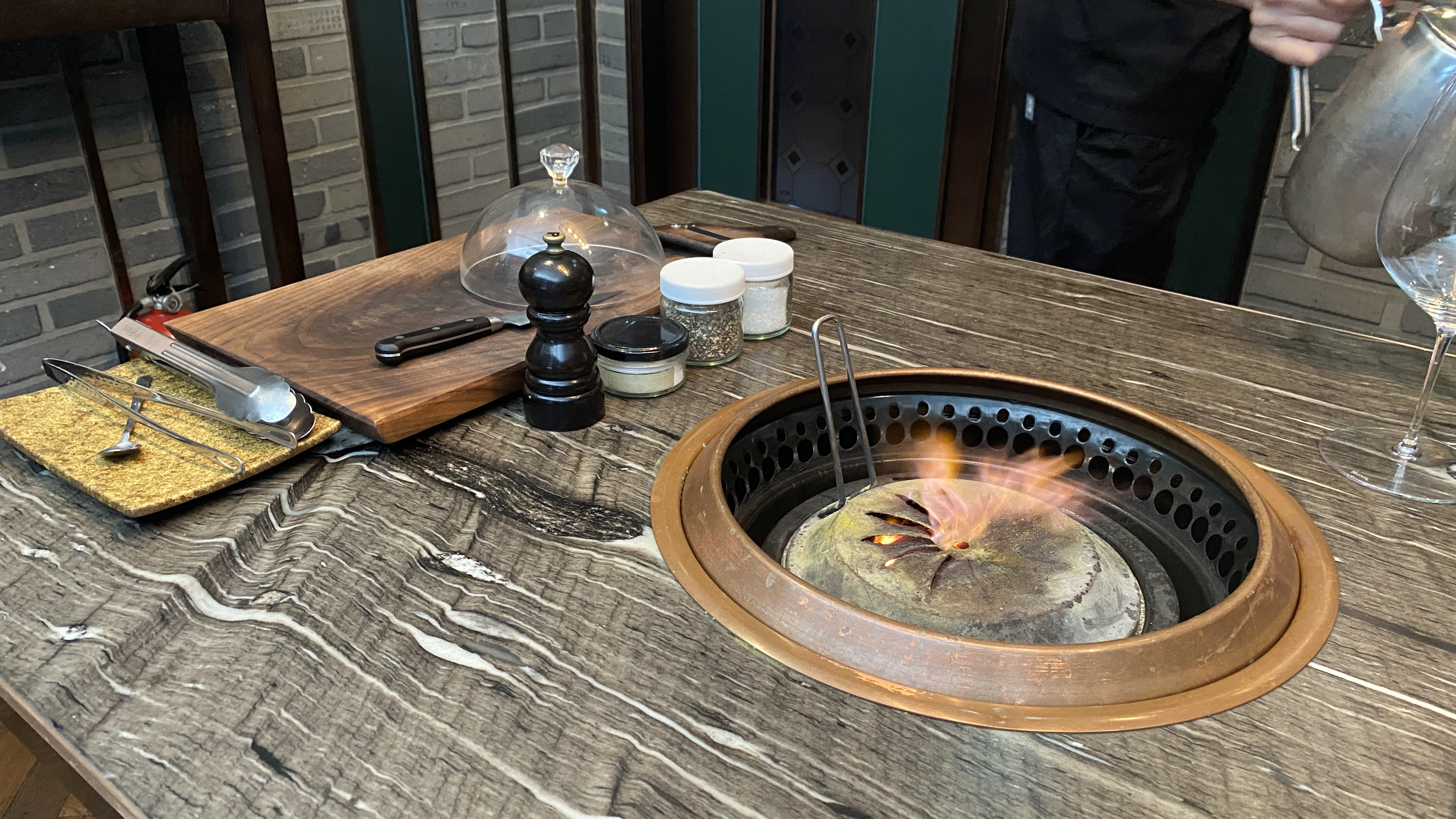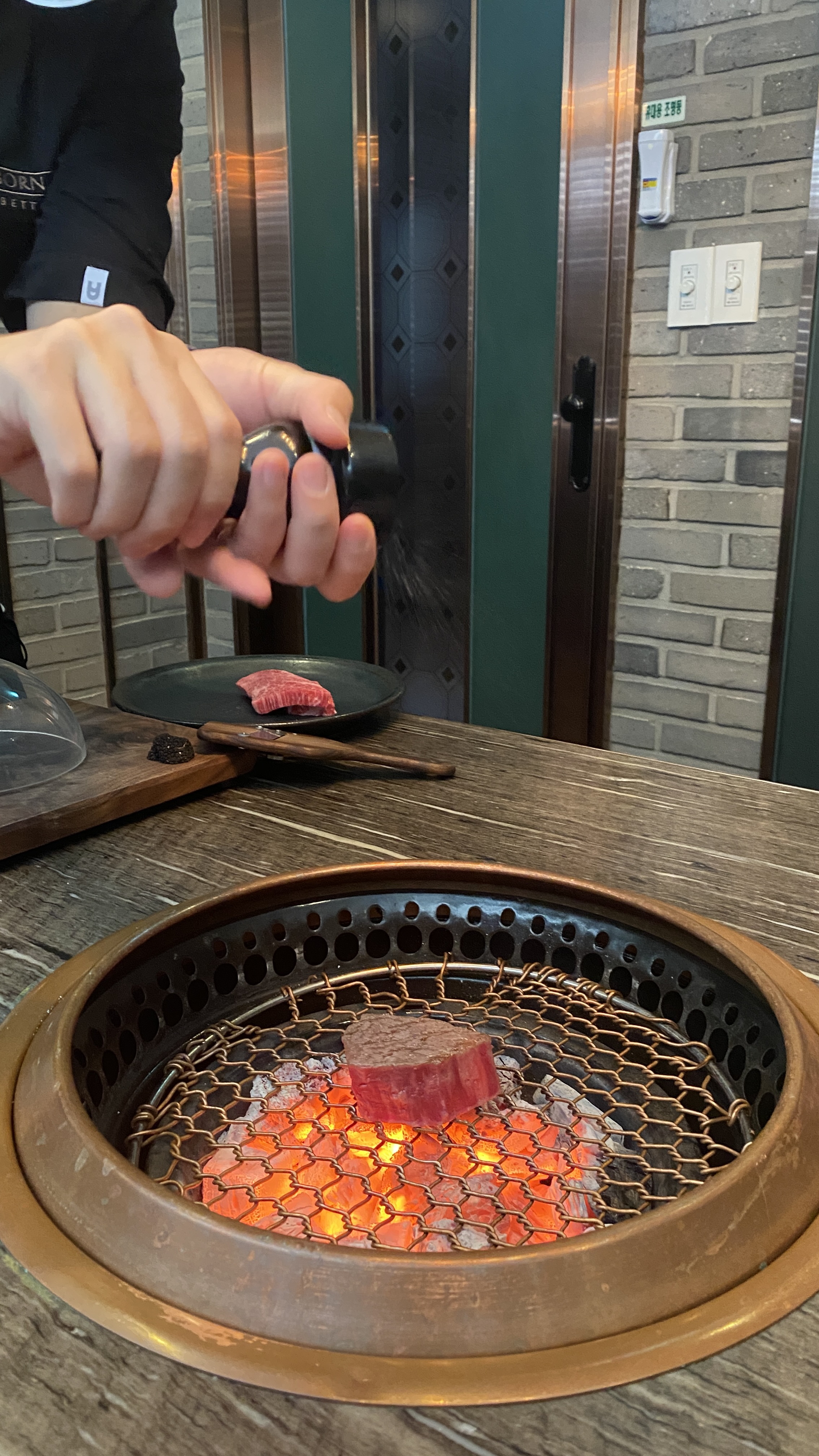 서버분은 간단한 설명을 해주시고 화로에 불을 넣고 개인 접시에 소금과 후추를 덜어주셨다.