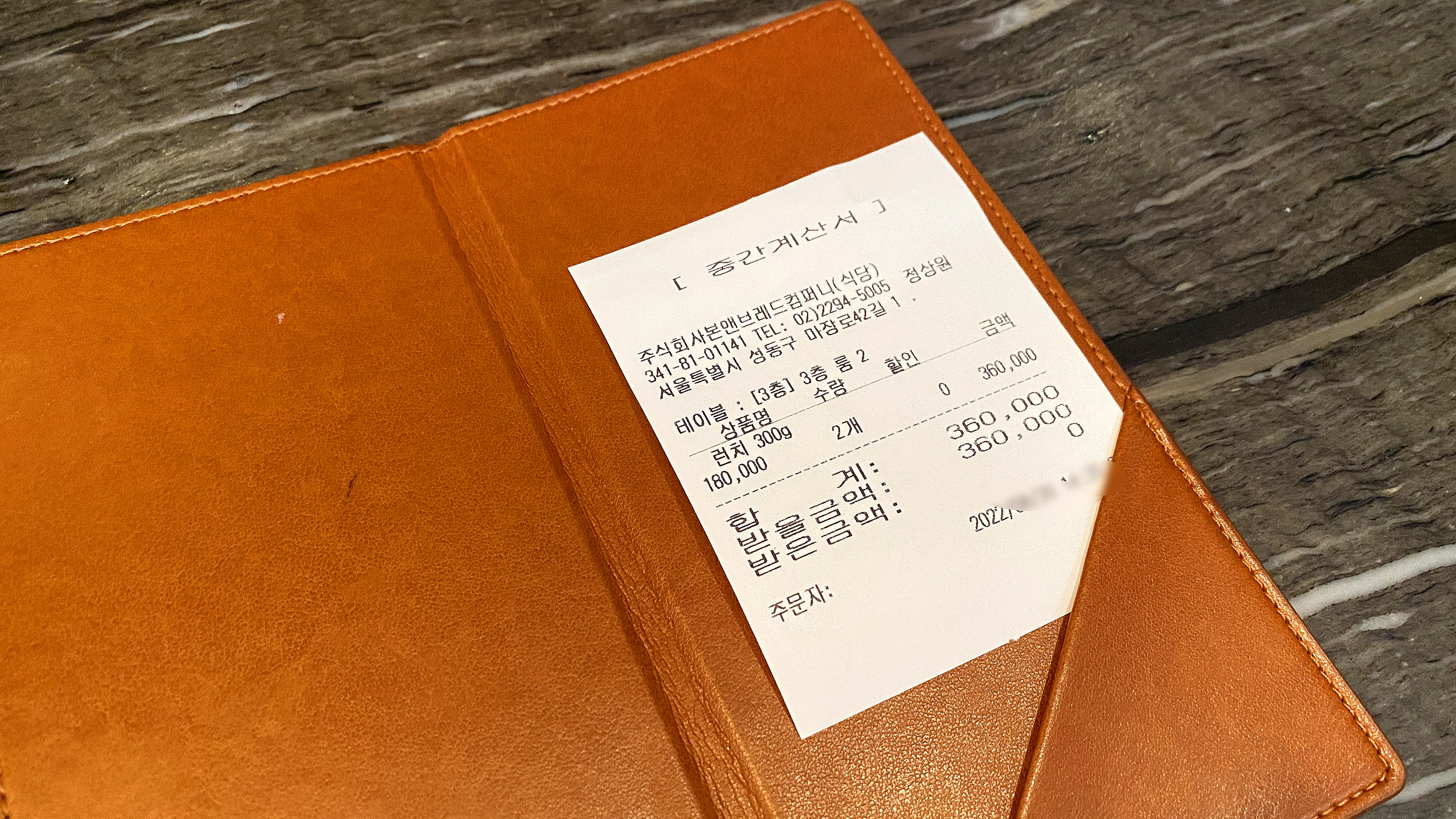 와인은 콜키지였기 때문에 가격은 인당 180,000원으로 총 360,000만원이 나왔다.