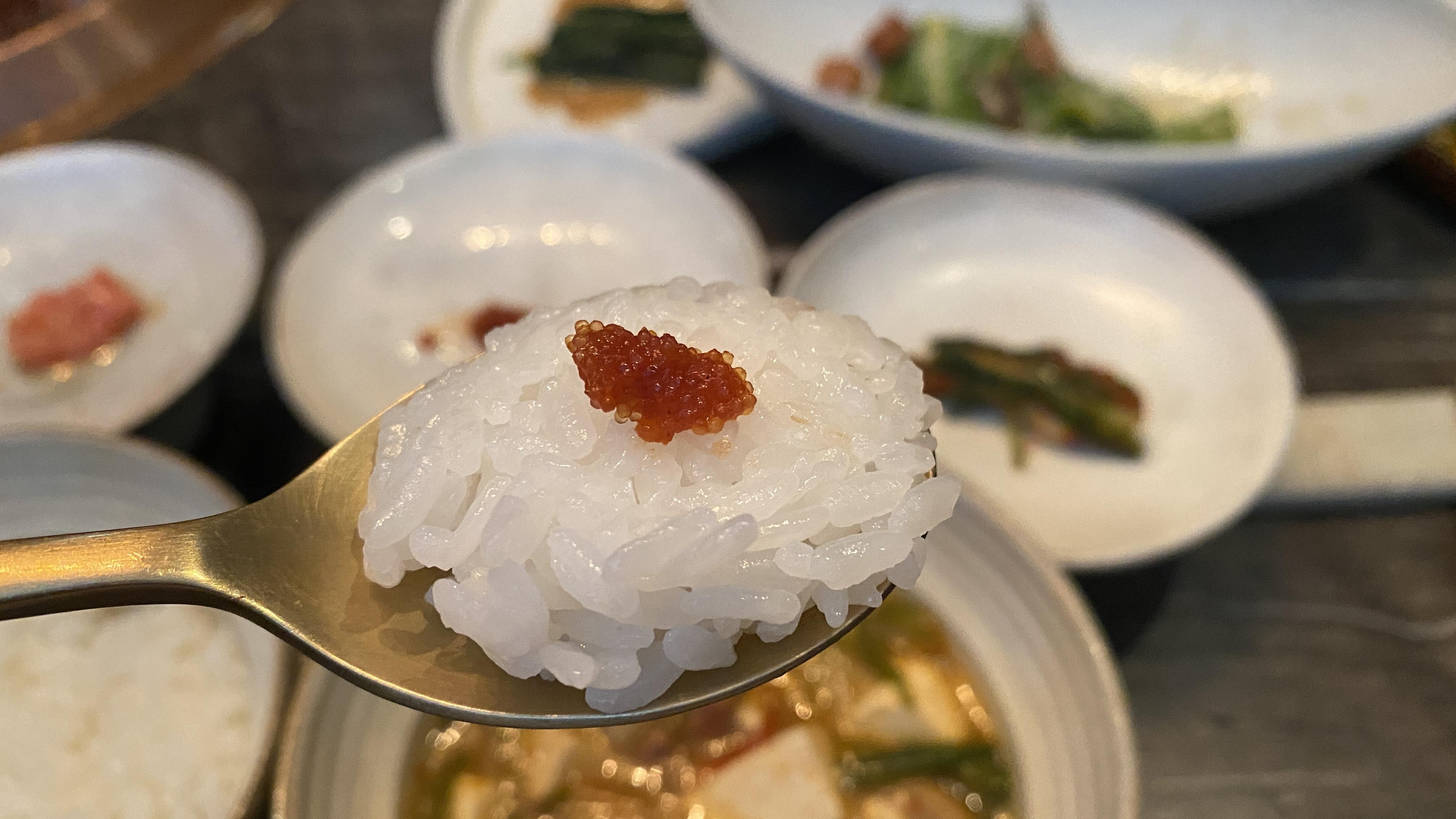 밥 다먹었는데 청어알이 남아 갈비위에 한점 올려 마지막 한 입 끝!
