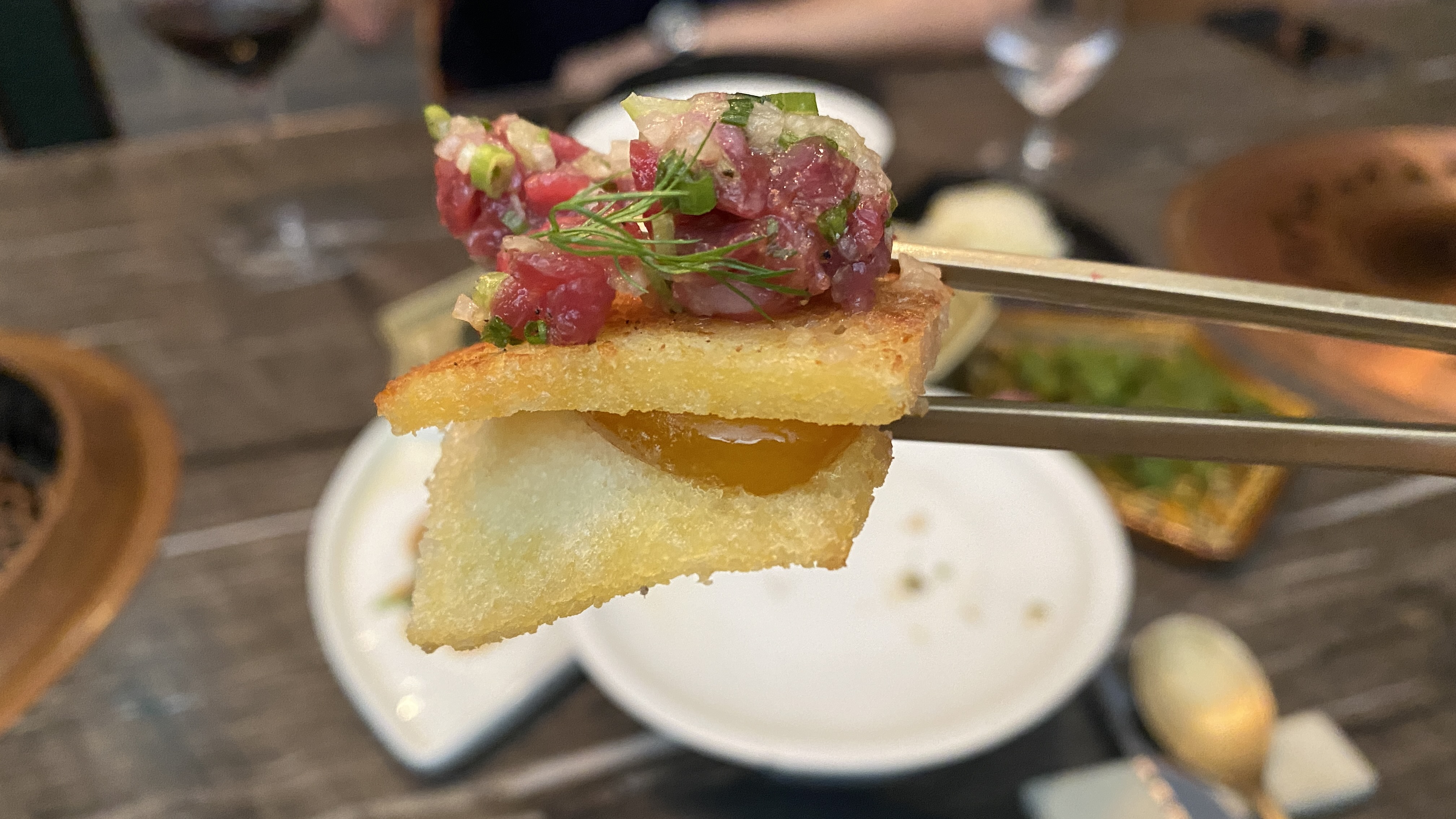 그리고 오른쪽의 토스트샌드같은게 진짜 대박인데 빵사이에는 수비드한 노른자가 있고 위엔 양념된 육회와 딜이 올라가있는데 육회맛도 진짜 대박이고 수비도된 노른자는 쫀득한 식감이 인상적인데다가 버터를 입혀 구운건지 모르겠지만 구수한 탄수화물까지 곁들여져 있으니 그야말로 금상첨화.....