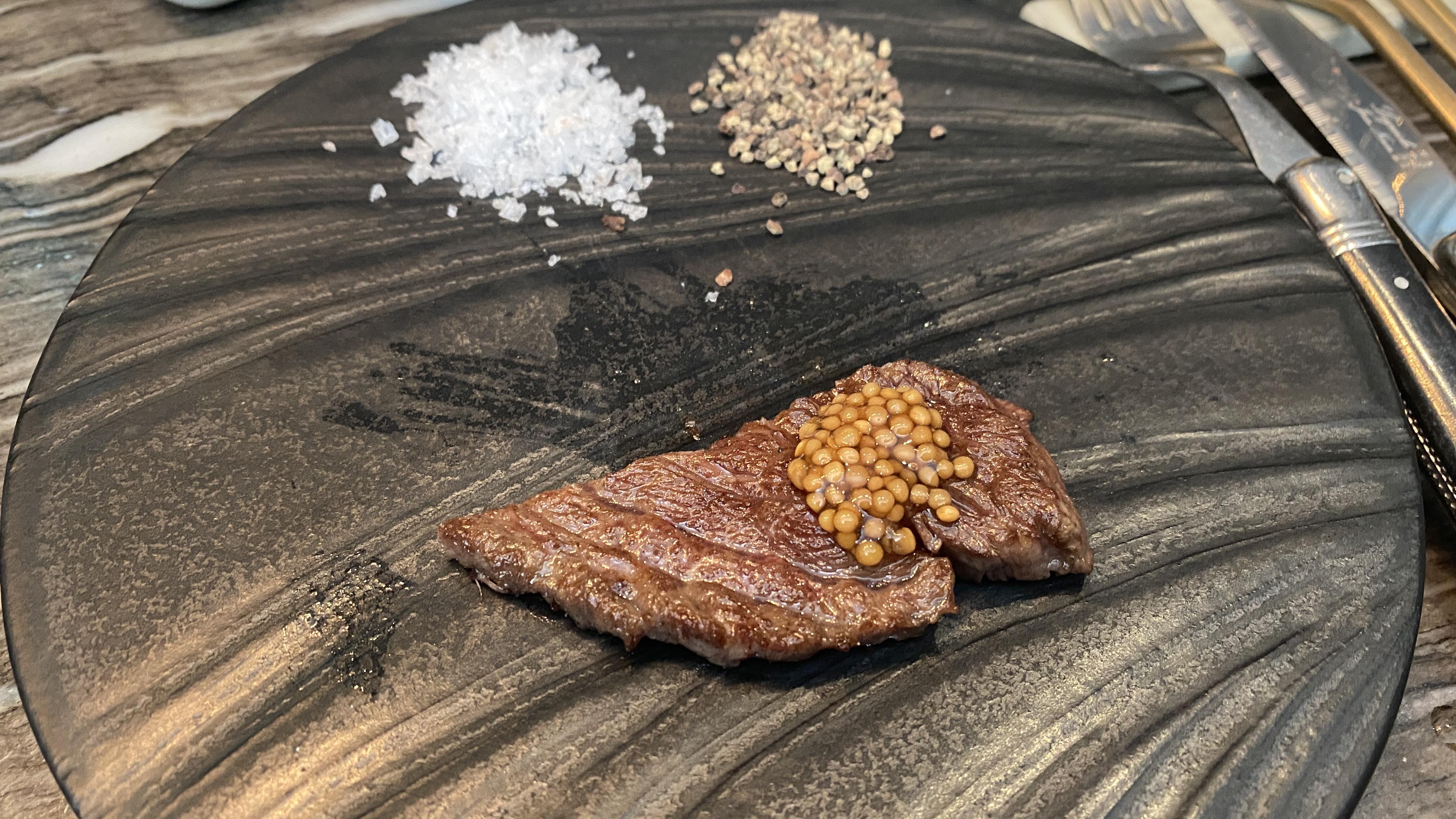 다음으로는 등심을 구워주셨고 여기엔 유자 홀그레인머스타드소스를 올려주셨다.